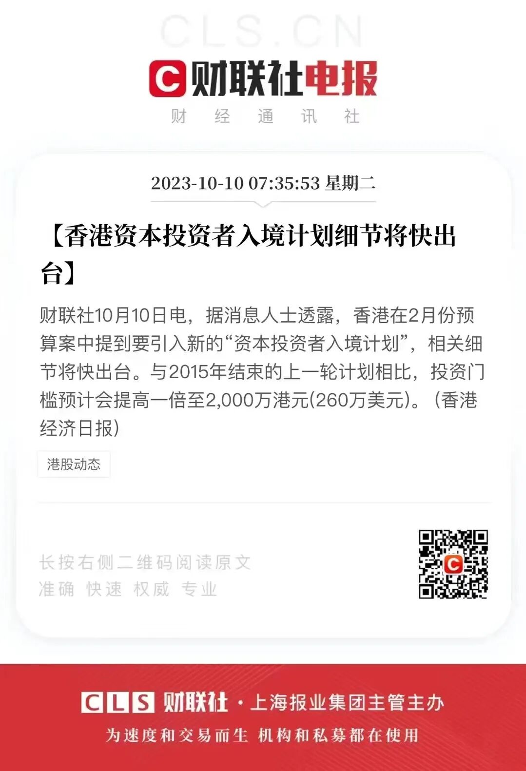重磅消息!香港投資者入境計劃細節即將出臺,門檻或不低于2000萬港元?