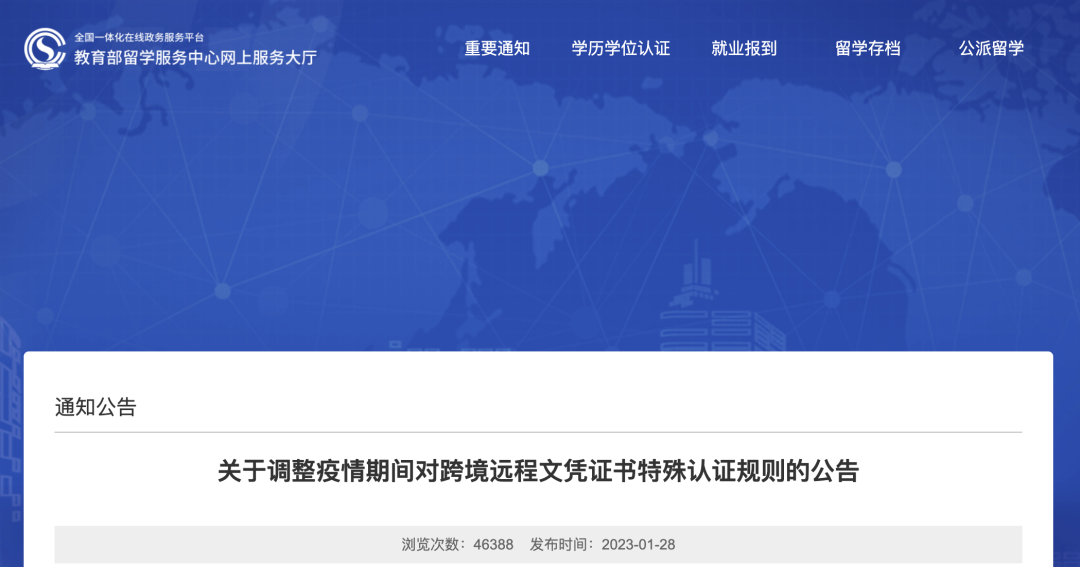 依據《國(境)外學歷學位認證辦法》,通過跨境遠程學習方式獲得的國(境)外學歷學位證書和高等教育文憑不在認證范圍。《公告》發布后,在2023年春季學期(南半球秋季學期)及以后仍然采用跨境在線方式學習(包括新入學和繼續學習的情況)獲頒的文憑證書,將不能獲得認證。