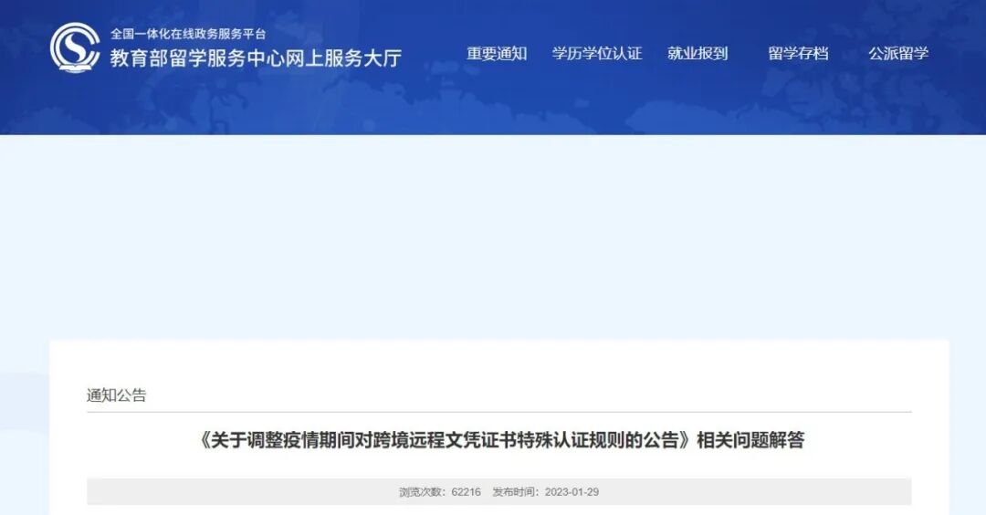 《關于調整疫情期間對跨境遠程文憑證書特殊認證規則的公告》(以下簡稱“《公告》”)發布后,部分留學人員十分關心,對大家關心的問題進行了梳理,在此進行統一解答。