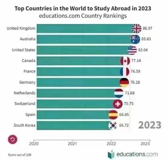 來自于Educations的評選,2023年全球留學國排名出爐!
