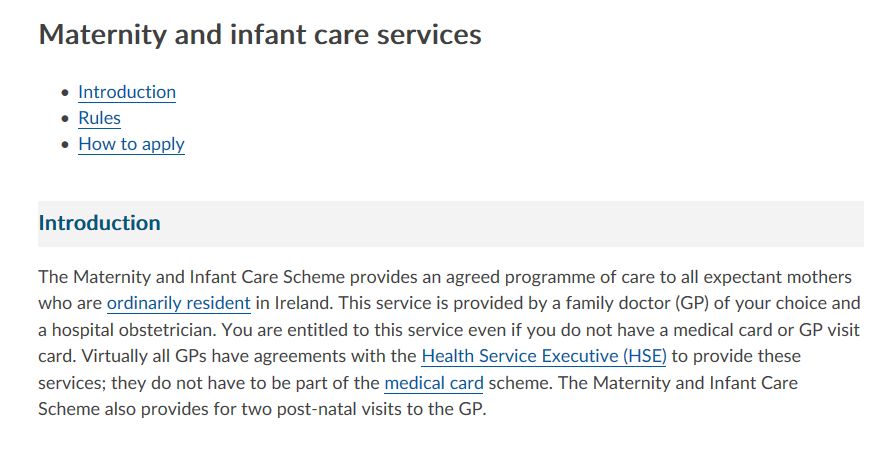愛爾蘭政府為孕婦提供免費的“母嬰護理計劃”。