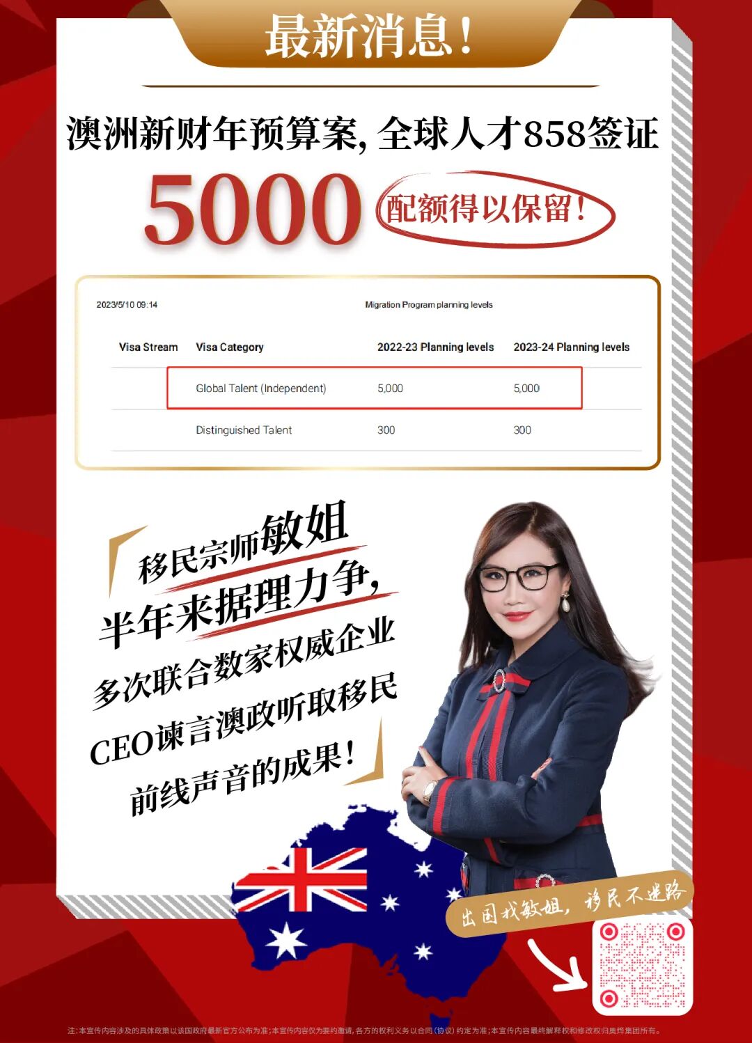 正所謂,“功夫不負有心人”。經過敏姐的不懈努力,終于在2023-2024財年配額出臺后,全球人才858簽證“5000配額”才得以保留!