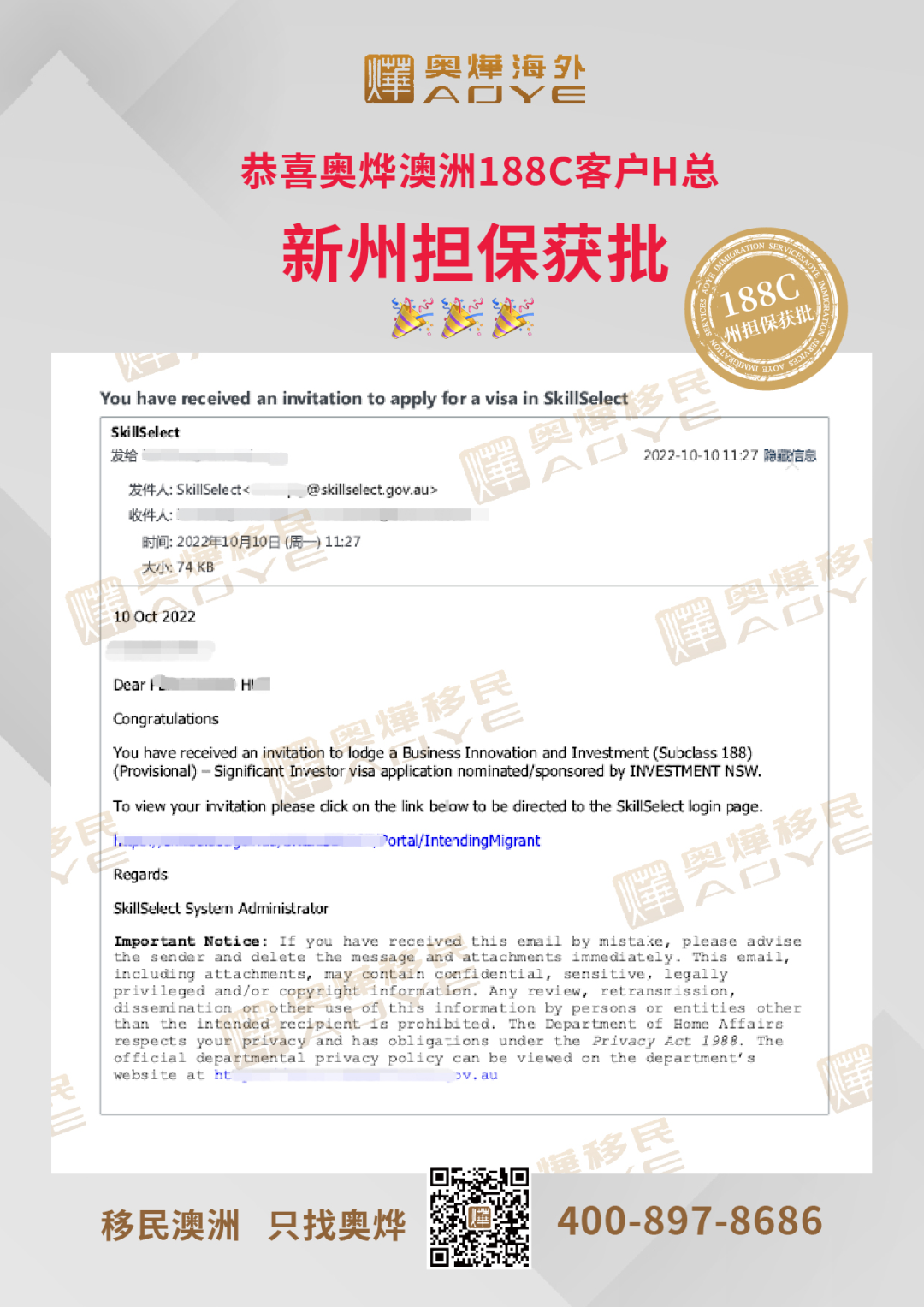 恭喜奧燁澳洲188C客戶