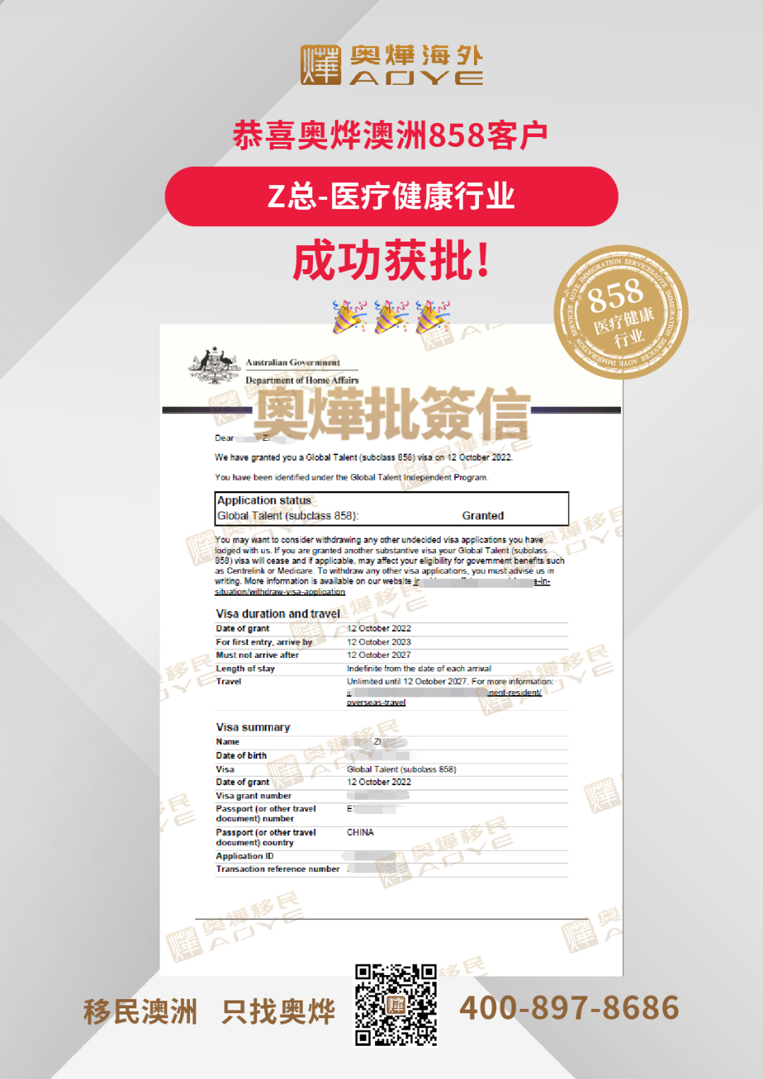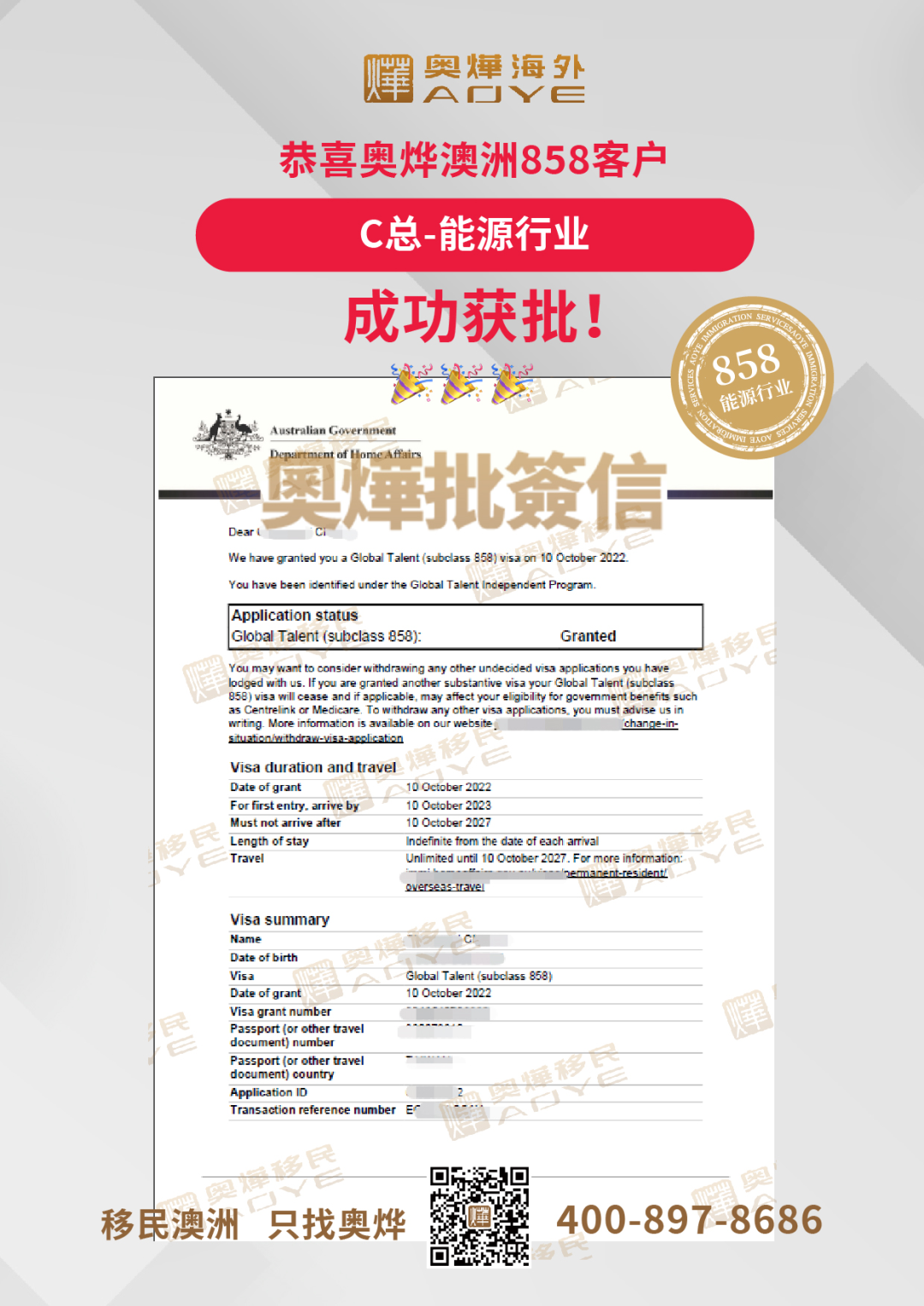 恭喜奧燁澳洲858客戶