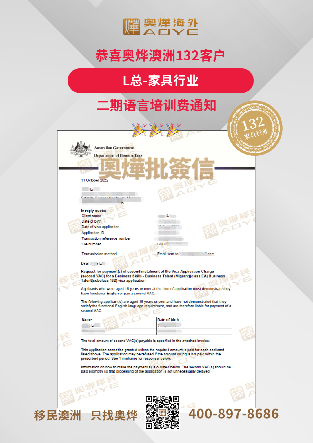 恭喜奧燁澳洲132客戶