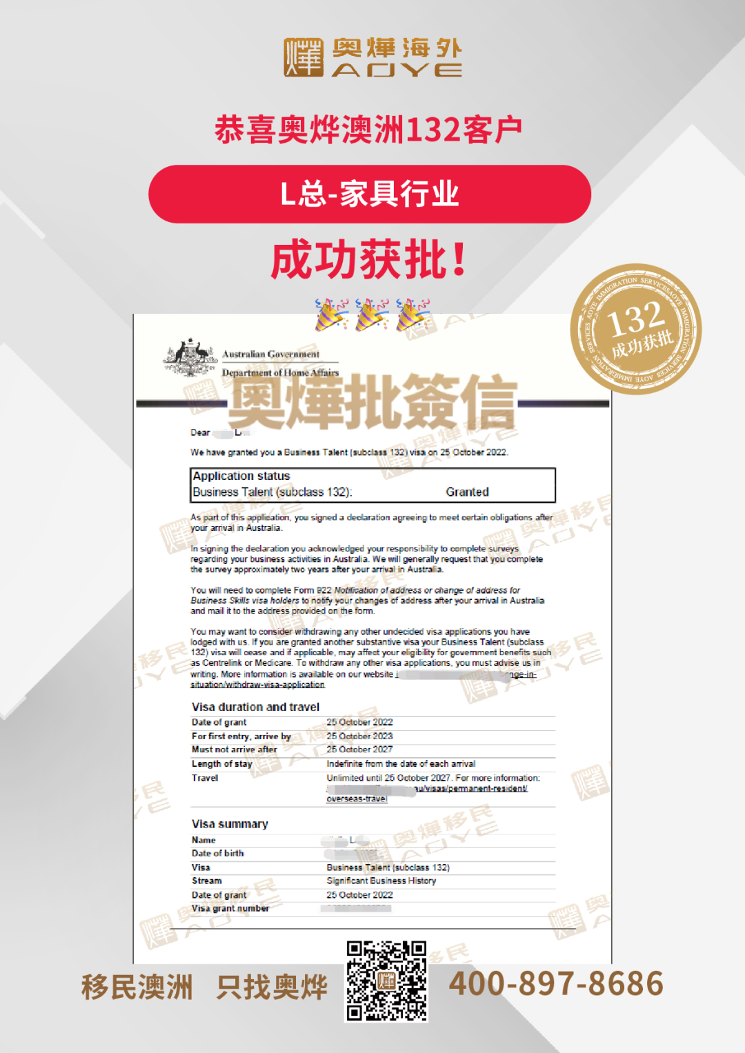 【奧燁捷報】祝賀澳洲132客戶機電設備行業H總,食品行業C總,家具行業L總,收獲喜訊