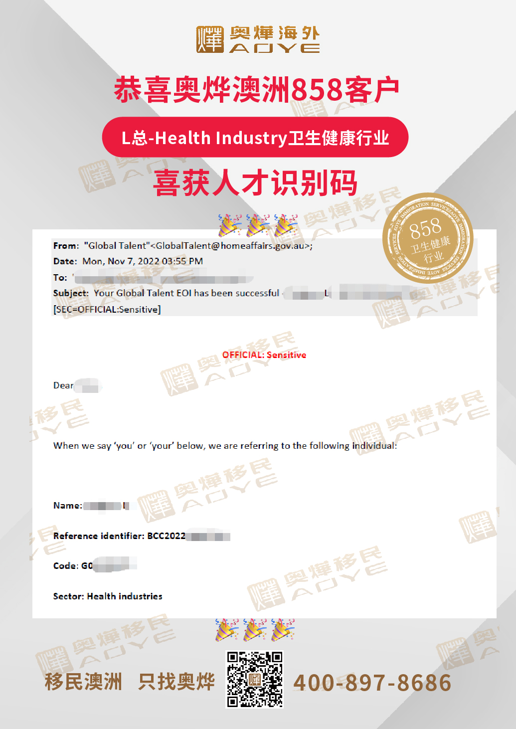 【雙喜臨門】祝賀澳洲858客戶金融科技行業Y總/衛生健康行業L總,喜獲人才識別碼